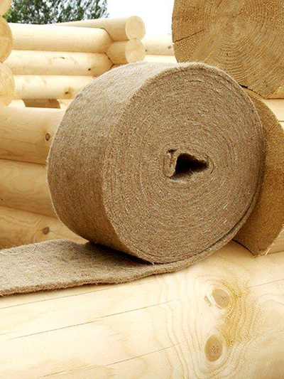 Джут ленточный межвенцовый утеплитель, который обеспечивает равномерное утепление стен лучше, чем пакля, льноватин, лен и мох.
