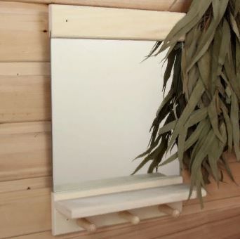 Зеркало Классика с полочкой и вешалками, имеет стильный современный вид, который идеально подходит для бани и сауны.