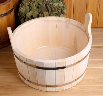 Вы не обожжётесь при прикосновении к шайке, даже если нальёте внутрь кипяток. Она сделана из дерева и имеет низкую теплопроводность. По той же причине ёмкость сохранит температуру прохладной воды.