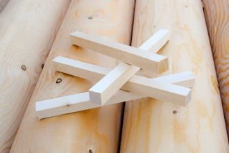 При сборке сруба, применяют большие шканты круглой или прямоугольной формы, формы, хотя в последнее время больше используются квадратные, вбиваемые кувалдой в круглые отверстия, предотвращая смещение соединяемых деталей. Располагают шканты в шахматном порядке, т.е. в разбежку, повышая жесткость соединения и предотвращая этим искривление всей плоскости.
