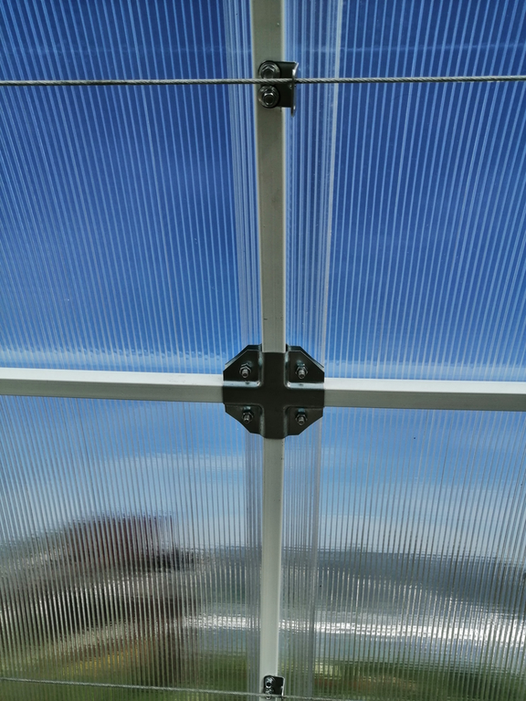 Система подвеса растений представляет собой систему стальных тросов в пвх оплетке, по 2 линии над грядкой, каждая выдерживает до 450 кг урожая.