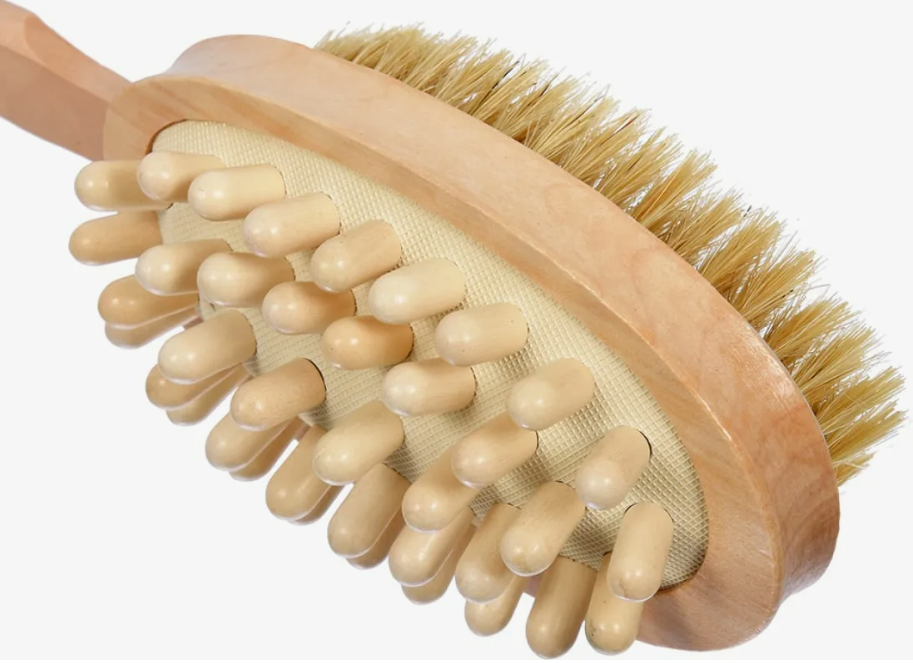 Массажные щётки имеют удобную конструкцию: с помощью деревянной ручки вы дотянетесь до всех частей тела, а те, что надеваются на руку, не спадут во время процедуры.