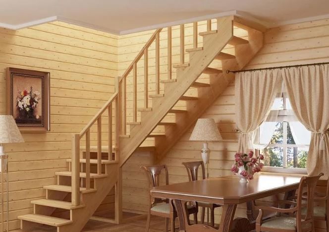 Организовать комфортный подъем на второй и последующие этажи можно, используя удобную лестничную конструкцию. Если позволяет площадь помещения, использовать лучше маршевую лестницу без изгибов, для экономии места и с эстетической точки зрения идеально подойдет поворотная лестница на второй этаж.