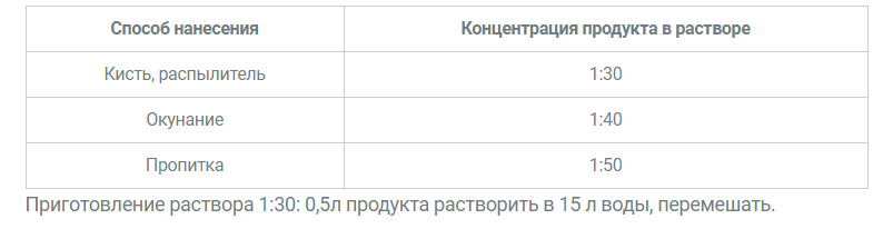 Продукт наносится наносится кистью с синтетическим ворсом, распылением (мелкокапельным разбрызгиванием), окунанием в стационарных установках, пропиткой в ваннах.