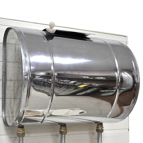 Выносной бак используется для нагрева воды в банных и душевых помещениях совместно с теплообменником. Теплообменник устанавливается поверх печей и нагревает воду до кипения. Соединяется с баком с помощью труб, что позволяет хранить воду в смежных помещениях.