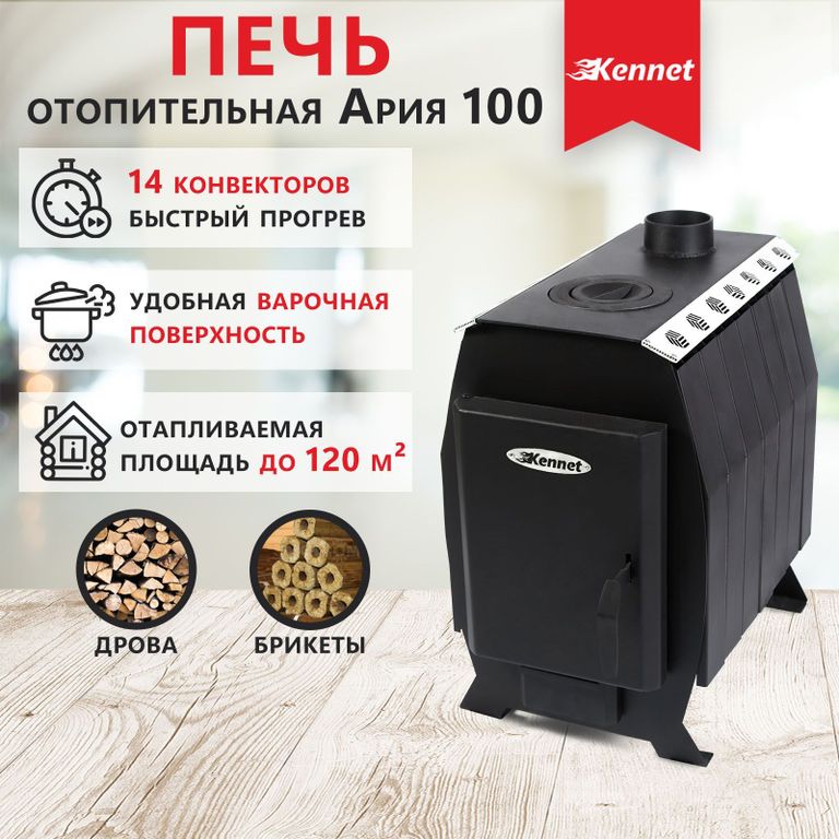 Печь отопительная Кеннет Ария 200 предназначена для обогрева помещения объемом до 200 м3. Печь может использоваться для отапливания дачи, гаража, теплицы и позволяет подогревать пищу.