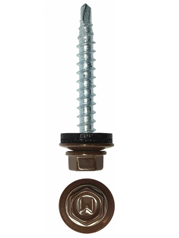 Саморез кровельный предназначен для фиксации фигурного и плоского листового металла на горизонтальных и вертикальных поверхностях. Метиз стальной, оцинкованный, головка коричневая (можно подобрать в тон профнастилу).