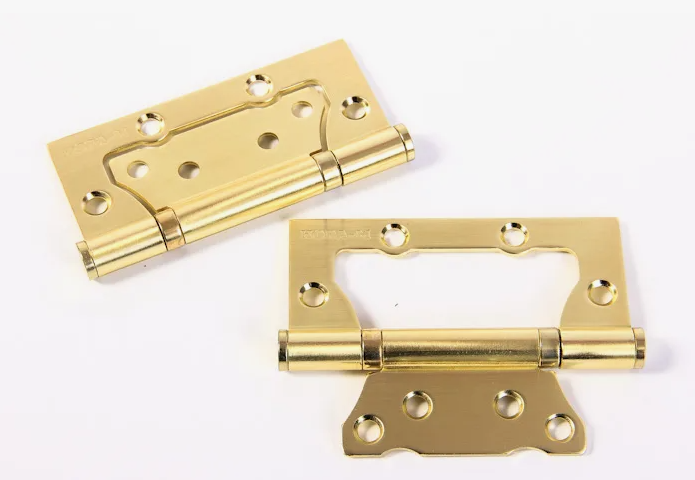 Конструктивно такие петли представляют собой две половинки (карты, пластины) на вращающейся оси с двумя подшипниками. Меньшую (внутреннюю) карту прикручивают к полотну, а большую (внешнюю) – к коробке. При закрывании двери одна заходит в другую, образуя единую плоскость.