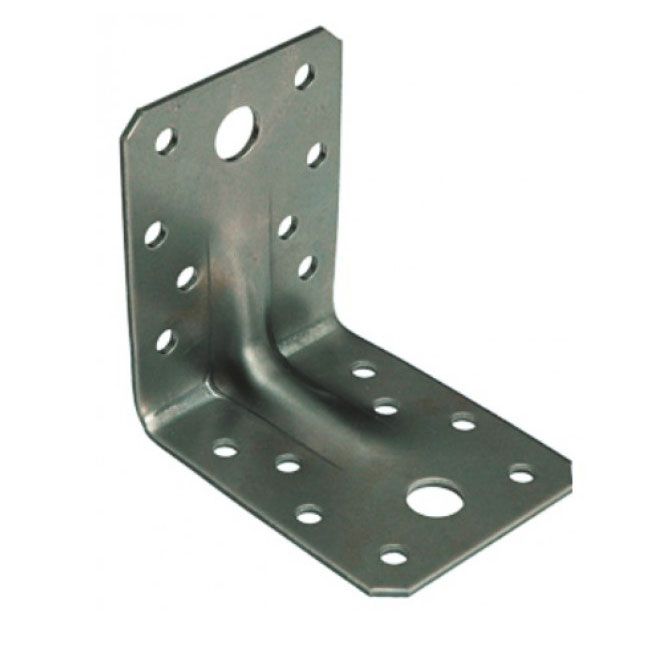 Усиленный крепежный уголок, изготовлен из оцинкованной стали толщиной 2 мм и имеет дополнительные рёбра жесткости для усиления его несущей способности. Изделие предназначено для крепления деревянных конструкций, в том числе при монтаже каркасов стропильных систем.