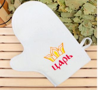 Варежка банная белая с вышивкой «Царь»