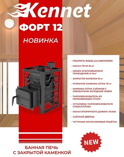 Современная банная дровяная печь с открытой съемной сеткой-каменкой предназначена для обогрева парильного помещения объемом до 14 м³ и получения влажного и сухого пара. Данную модель отличает глубокая закрытая каменка в форме многогранника для максимального задержания тепла в печи. Увеличенный объем камней в сетке-каменке обеспечивает стабильную температуру в парильном помещении и способствует лучшей парогенерации.