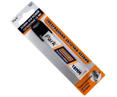 Изготовлены из углеродистой стали и меют форму трапеции. Ширина лезвий-18 мм. Лезвие состоит из нескольких сегментов, каждый из которых имеет свою режущую кромку. Если лезвие затупилось, то, обломив один сегмент, можно продолжить работу новой режущей кромкой.