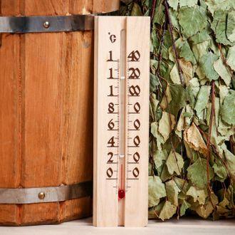 Настенный стеклянный термометр в дереве отлично подойдет в парную бани, сауны.