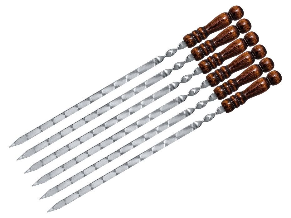 Шампуров для мангала и барбекю, из нержавеющей стали. Шампура подойдут для приготовления сочного шашлыка, люля - кебаб, рыбы, грибов, овощей на мангале. Шампура для пикника, кемпинга и отдыха на природе сделает Ваш отдых запоминающимся. Шампура с деревянной ручкой очень удобны в применении - обладают теплоизоляционными свойствами, не нагреваются, не обжигают руки. Пищевая нержавеющая сталь не поддается коррозии. Шампура идеальный инструмент для приготовления шашлыка. Для того что бы шампура для шашлыка прослужили вам верой и правдой за шампурами необходимо ухаживать: после приготовления пищи тщательно промывать шампур водой и просушить. Набор шампуров подарочный станет отличным подарком мужу, коллеге, отцу, брату на 23 февраля, новоселье, Новый год. Чтобы отдых на природе остался в Вашей памяти приятными воспоминаниями приобретайте наш набор для мангала.