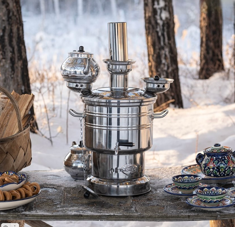 Турецкий самовар – идеальный вариант, чтобы разнообразить процесс готовки на улице, а зимой, которая наступит совсем скоро, позволит согревать в процессе приготовления любимого плова или шашлыка!