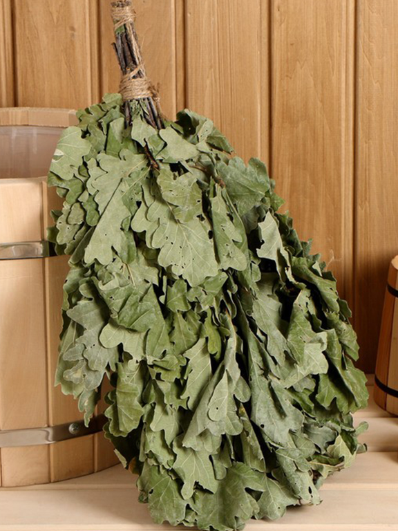 Дубовый веник делает кожу матовой и упругой, оказывает сильное противовоспалительное действие.