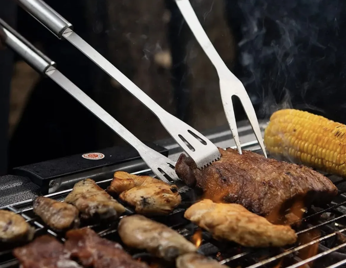Набор для барбекю и гриля состоит из 7-х предметов: щипцов для барбекю, вилки для барбекю, 4-х шампуров и лопатки. Набор для шашлыка станет хорошим помощником в приготовлении на мангале любимых блюд. Длинные утолщенные рукоятки обеспечивают защиту от жара. 4 шампура с «улиткой» (витой частью) для лучшей фиксации. Вилкой Вы сможете проверить готовность мяса или снять его с огня. Лопатка служит для переворачивания еды без проколов, обеспечивая сохранность структуры продукта. Прорези в рабочей части обеспечат отток лишней жидкости. Благодаря специальной конструкции, щипцы помогают переместить горячую еду, не нарушив ее форму, тем самым сохраняют эстетичный вид для подачи блюда. Инструменты для мангала выполнены из нержавеющей стали: выдерживают большие перепады температур, устойчивы к коррозии. Комплект станет необходимым аксессуаром для дачного пикника, походов, кемпинга поможет в приготовлении гриля, барбекю или шашлыка. Удобная сумка-чехол незаменима при транспортировке и превращает комплект в подарочный набор для гриля и барбекю. • Стильный дизайн позволяет использовать аксессуары как набор для кухни, в качестве кухонной утвари. Длина предметов 35 см. Длина шампуров - 37 см. Вместе с набором инструментов для гриля ищут: набор посуда для пикника набор посуды для дома набор для шашлыка подарочный подарок мужчине инструменты для приготовления барбекю подарочные наборы посуда для дома шашлычный набор аксессуары для гриля и мангала решетка для гриля на мангала набор для гриля и шашлыка щипцы для гриля для гриля и мангала набор для барбекю и гриля подарочный инструменты для гриля посуда для дома посуда для дачи