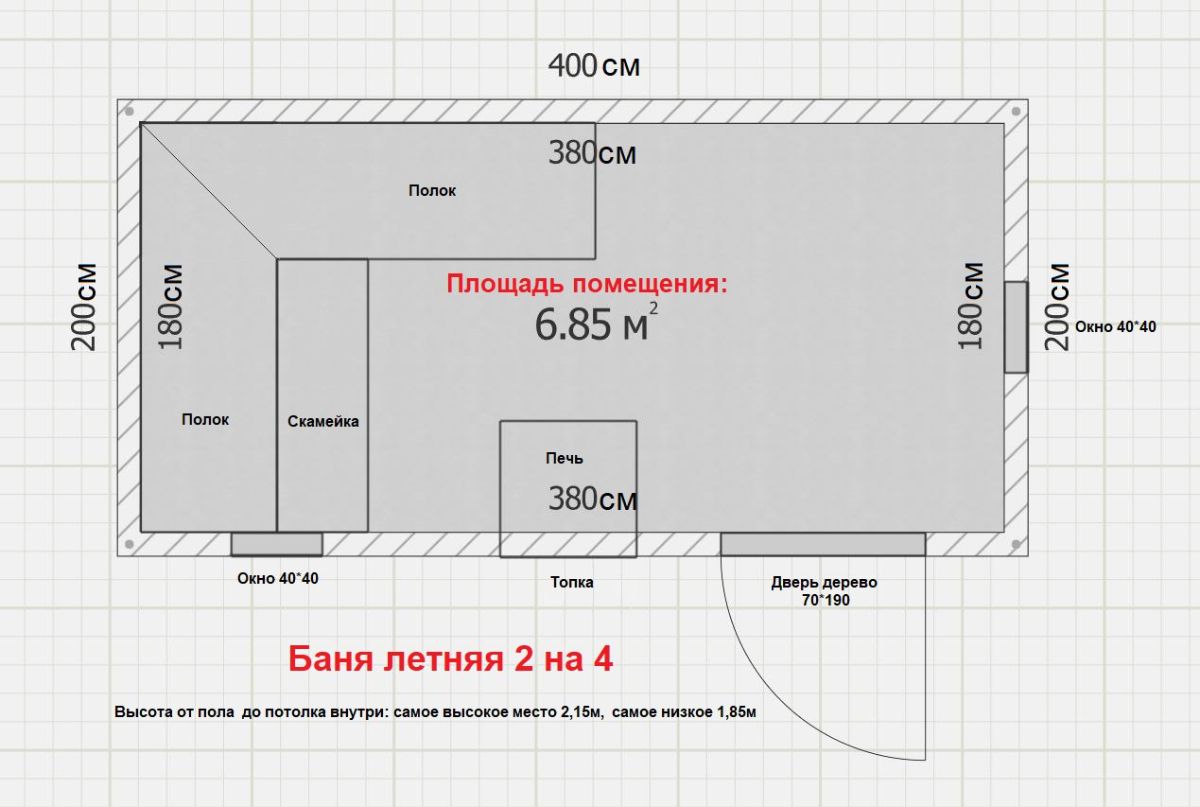 Размер бани: 2х4 метра